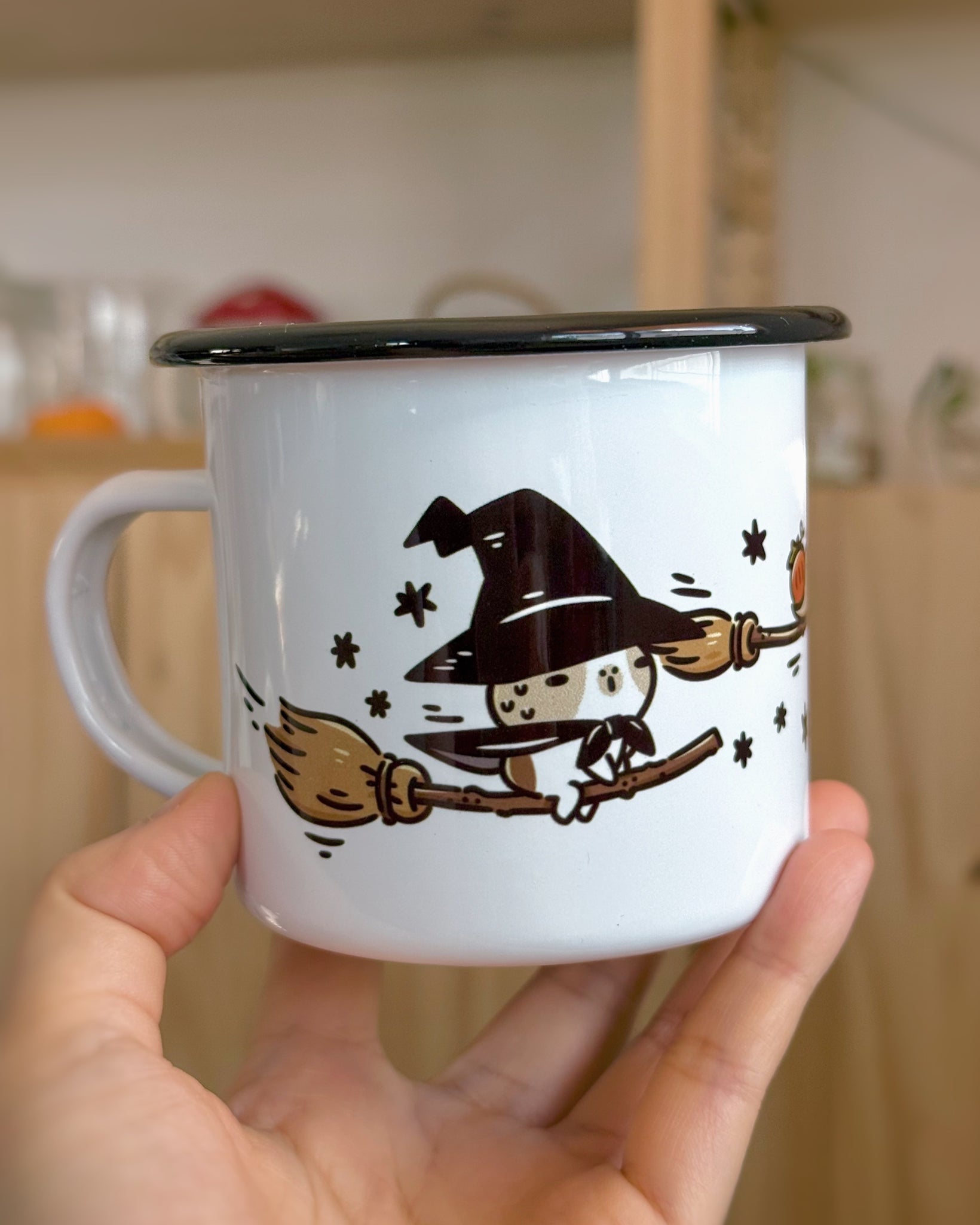 Bubu and Moonch Enamel Camp Mug - "Witches' Brooms"